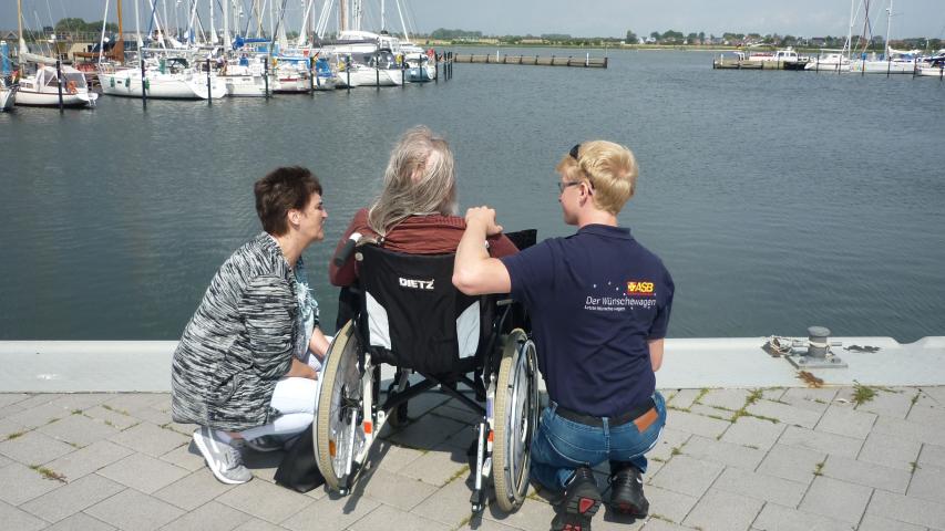 Für unseren Fahrgast Herrn P. sollte sein lang ersehnter Herzenswunsch in Erfüllung gehen: In früheren Jahren hat er auf der schleswig-holsteinischen Ostseeinsel Fehmarn gewohnt und dort den Großteil seines Lebens verbracht und als Maurer gearbeitet. Nachdem er nun viele Jahre getrennt von seiner alten Heimat lebte, kehrte er nun mit unseren beiden Wunscherfüllern Ann-Sophie Schmuhl und Jonas Priedemann dorthin zurück. Zurück auf seine Sonneninsel, die ihren Namen den rund 2.000 Sonnenstunden im Jahr verdankt – ein Topwert in Deutschland!